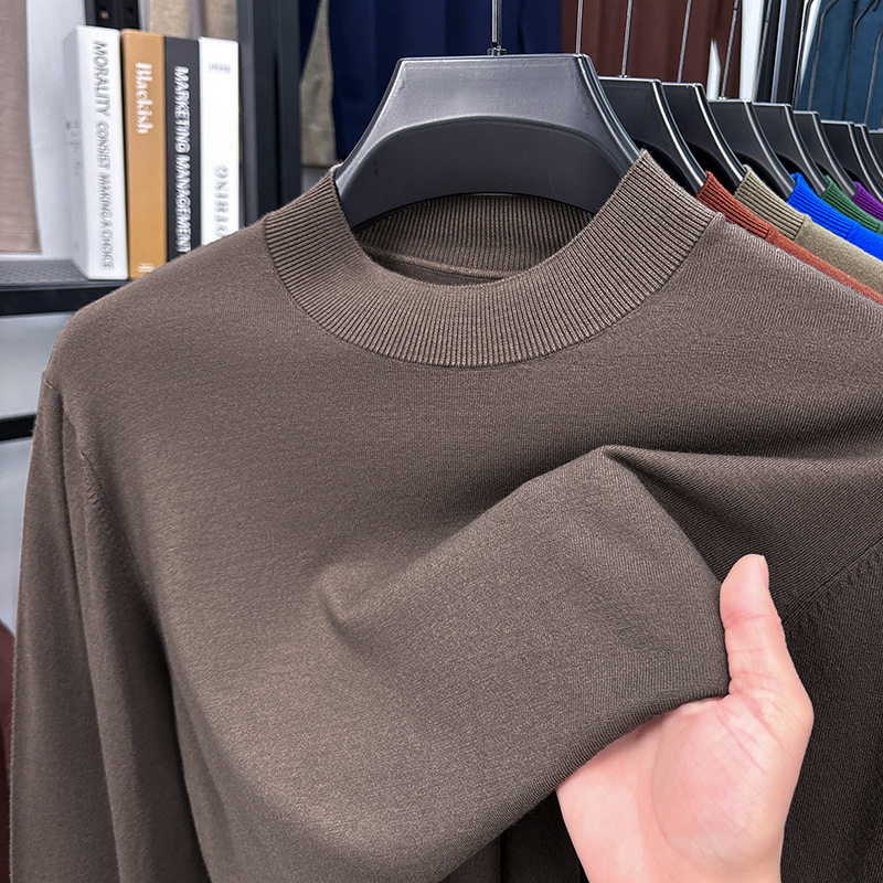 2025 Autumn and Winter Men's Stand Collar Cashmere Casual T-shirt